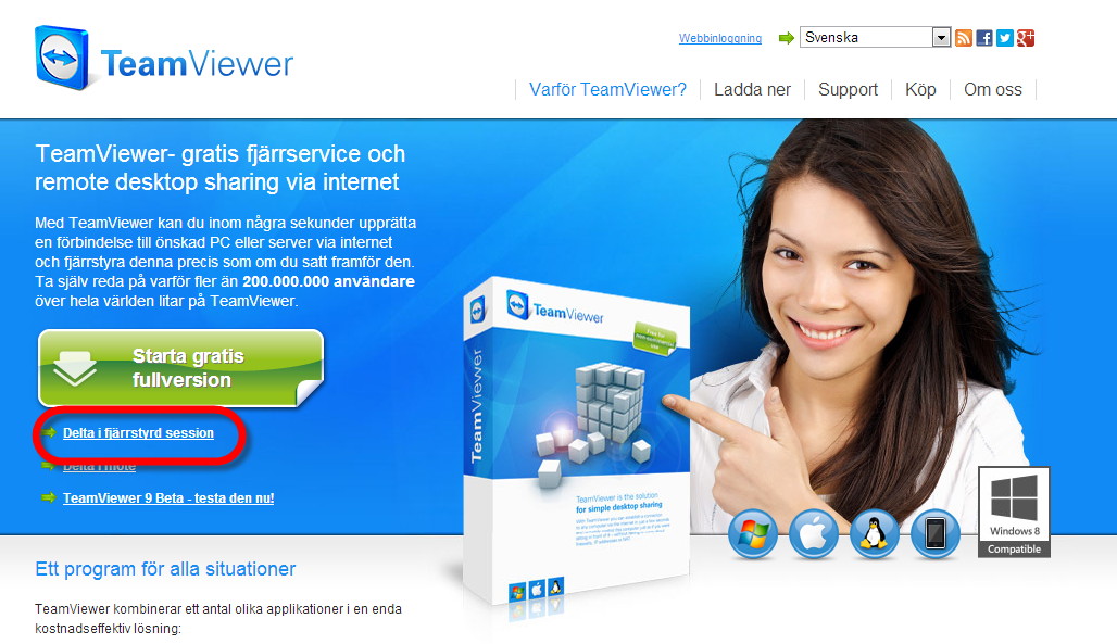 Surfa till teamviewer.se. Klicka på Du kan också klicka här . |
