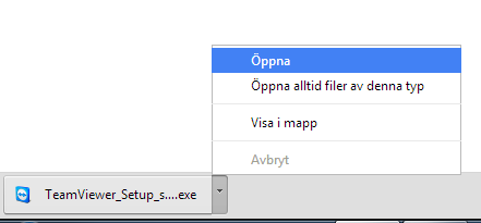 Kör den nedladdade filen. Se nere i högra hörnet på webbläsaren! Klicka Öppna! |