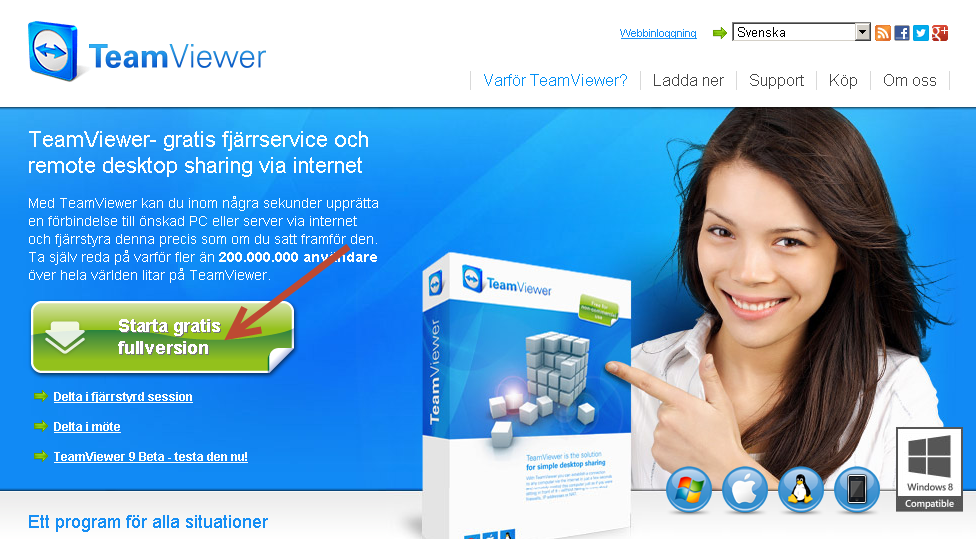 Surfa till teamviewer.se. Du kan också klicka här . Klicka på