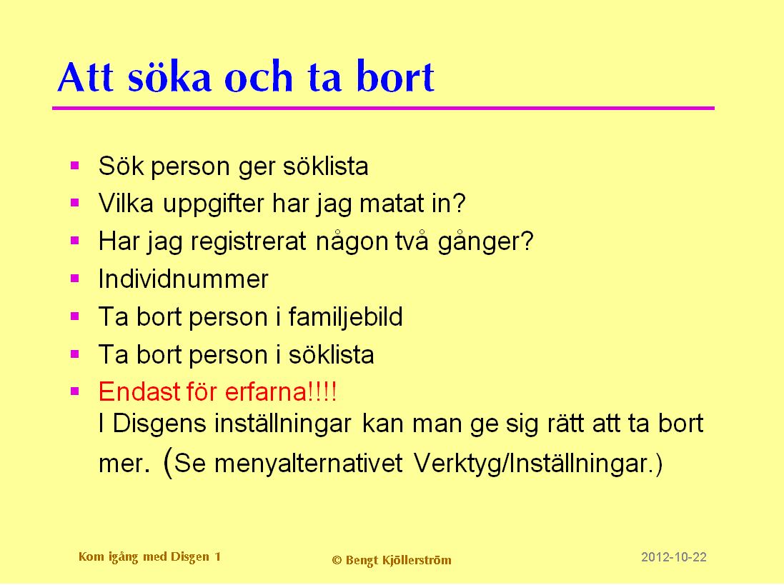 Att söka och ta bort personer i Disgen 8.2