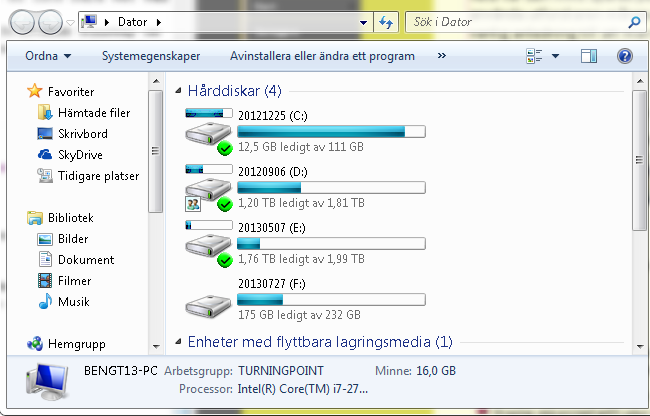 - Tryck Win-tangenten och E samtidigt - öppnar diskarna i din dator